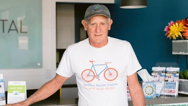 Christopher owns a custom bike shop in Mesa, Arizona. Christopher was embarrassed about his mouth’s appearance, but couldn’t afford the treatment he needed. Once he had found My Dental Dentistry & Implants, Dr. Fulcher quoted a price that was a mere fraction of what Christopher’s original dentist quoted. Within three weeks, My Dental Dentistry & Implants transformed Christopher’s mouth. He’s excited to feel confident in sales and to smile more. If you’re looking for life-changing dental work that won’t break the bank, give My Dental Dentistry & Implants in Mesa, Arizona a try.